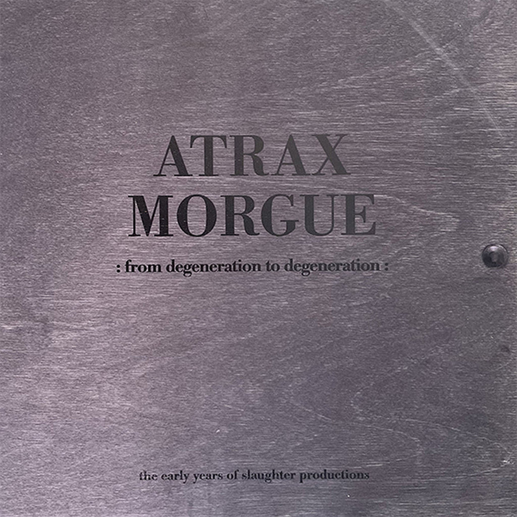 "Mind-blowing and space-expanding, an absolute spectacular object. Tape after tape, from degeneration to degeneration, with the sole help of an analog synthesizer Sequential Circuits Six-Trak, a microphone connected with a Yamaha multi-effect, tape decks and a mixer, Marco Corbelli blows up emotions and delusions, cutting out the hard way inspired portraits of phobias and deviation. With this minimal equipment Marco has created all his shocking early cassettes, always characterized by his cold, sick and querulous synthesizer; pitch perfect for the industrial movement into which he first emerged. These aspects of his practice are particularly drawn into the light by the main manifesto of Atrax Morgue -- the analysis of the death, his perfection and complete habituation: injections of death to continue to live! Beautifully brilliant, profoundly ambitious and crucial in constructing a more inclusive vision of Atrax Morgue's deep, extensive work, From Degeneration To Degeneration box set represents an absolute approach to the industrial and noise scene in the nineteens. The putrescence is palpable, and one could almost smell and taste the miasma of decay that pervades the entire box. Anxiety, alienation, and hypochondria turn into a deep paranoia in pain. Without hesitation, the bodies are emptied, leaving the field to an electronics purulence of rare power disconcerting. The psychopathological sound is white, painful and horrific; creates a mental alteration that initiates brutal operation of psychic surgery, neuroses and split personality. Crosses terrifying rooms lit by neon lights, corridors filled with gruesome tools, machines of blood and bits of human tissue floating in jars of formalin. The hum of the synth, the roar of noise and fights razor are often repeated loops, where each track has a compact structure, following the main theme (of death). An absolute triumph and essential on every count for fans of industrial and synth/experimental music and a hallucinatory and intense set of finely tuned and tectonic form pieces. A tour-de-force survey of Corbelli's remarkably diverse vision within the industrial and noise scene. Contains reissue of complete Slaughter Productions tapes titles. 12 cassettes in black wooden box 12" size; second edition of box set comes with a 40-page book with original credits from every cassette and Marco Corbelli's pics with some completely new shots, two A4 size inserts glossy coating with two unpublished Marco Corbelli self-portraits and never seen before, one postcard with unpublished Atrax Morgue self-inflicted wound pose, an official certificate hand numbered with silver ink in 99 copies and a big poster; includes download code." - Urashima.