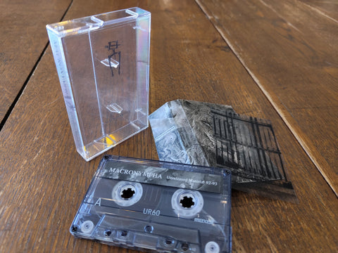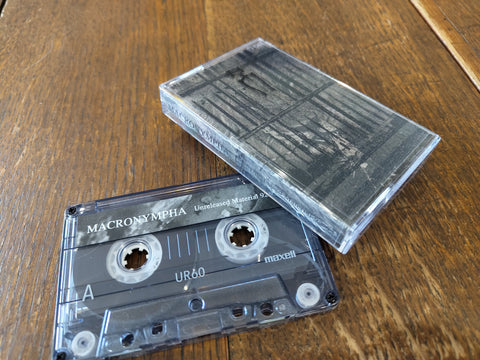 Several years ago, while searching Nakajima-san's archives for AUBE master tapes, I came across a stained brown with cigarette tar cassette labeled Macronympha - Unreleased Material, and marveled at its contents.