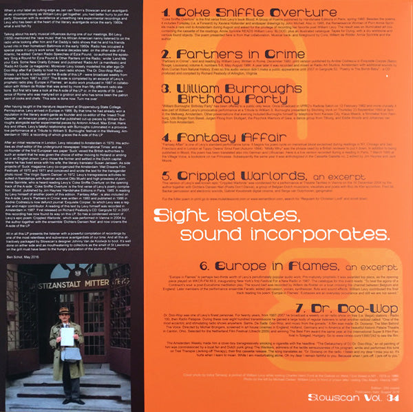 "Edition of 200 + 50 AP. A collection of tape/text/musique concrete pieces featuring various collaborators, including Willem De Ridder-- "chairman" of the Northern European branch of Fluxus (and associate of Dick Raaijmakers, Louis Andriessen and others), with whom Levy edited "Suck," "Europes first porn newspaper." Levy was also an associate of Otto Muehls.."