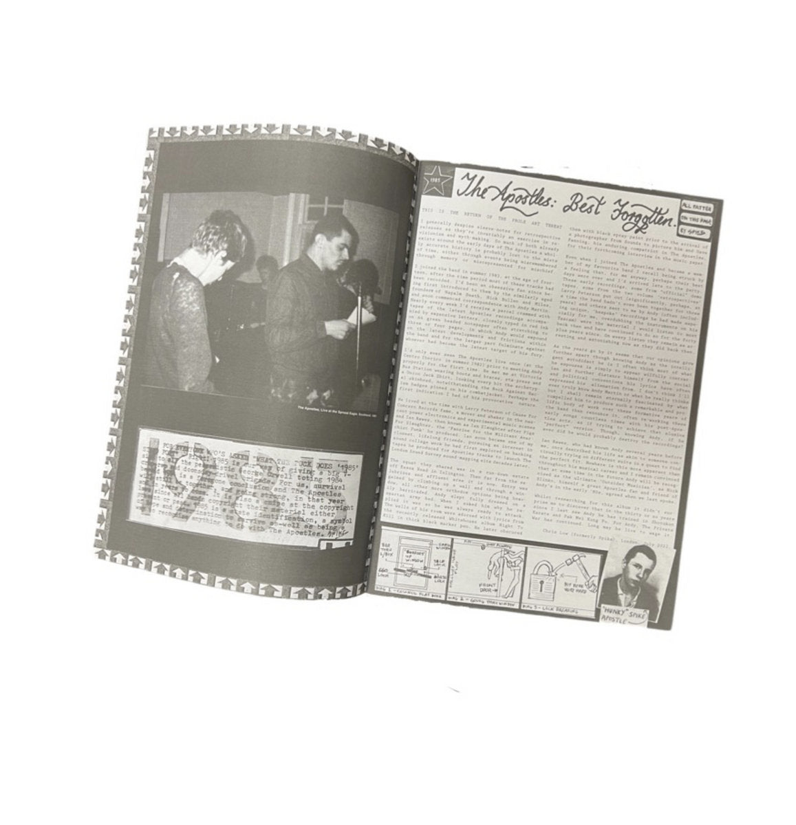 “Best Forgotten comes in a hand stamped, stickered and assembled edition of 500 numbered double black vinyl copies and includes an A3 poster and 32 page A4 zine collecting archival photos and images from The Apostles tapes & zines along with liner notes and reflections on the tracks written by Steve Underwood (Harbinger Sound), Chris Low (former Apostles drummer) and The Apostles frontman Andy Martin, who gave this project his full support.