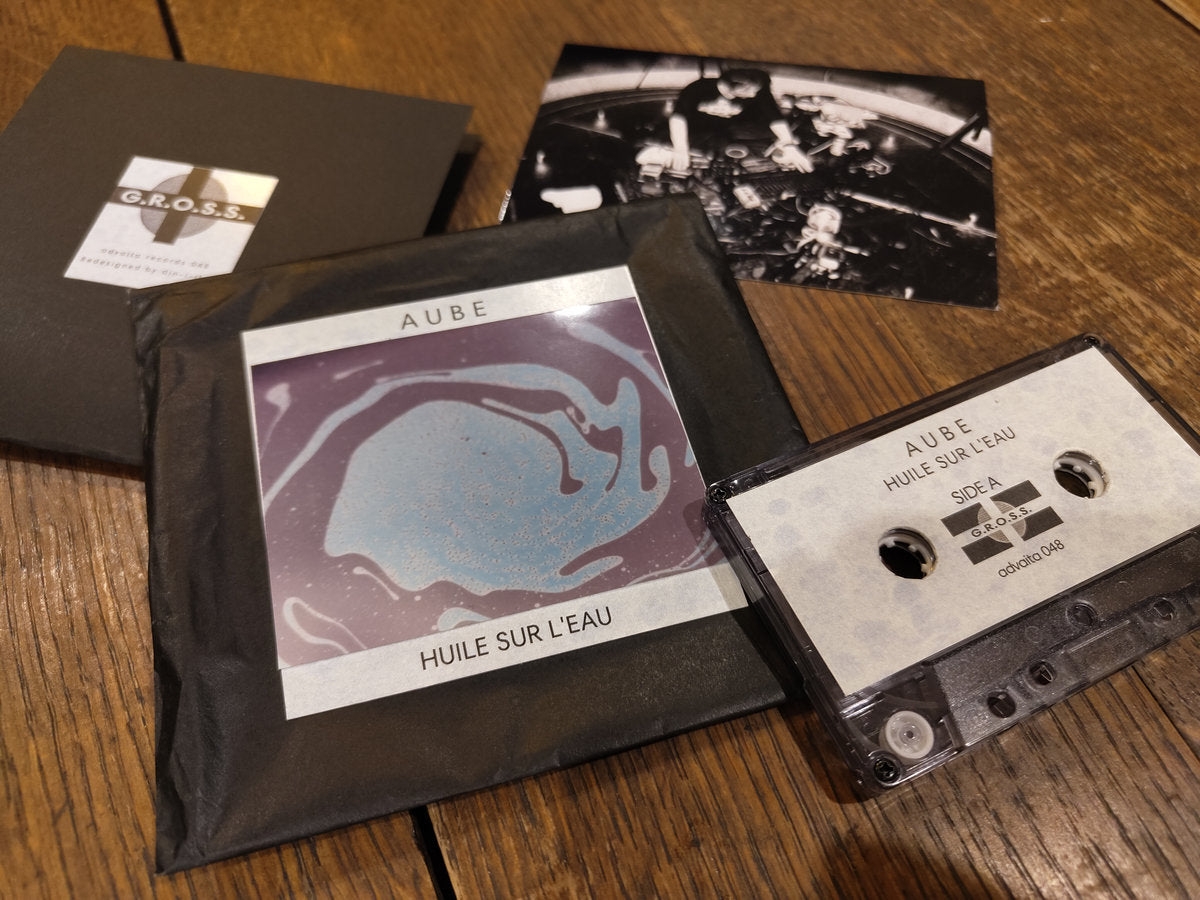 Originally released in 1991 as “Oil On Water” under the name Akifumi Nakajima in a limited edition of 33 copies, it was re-edited and re-recorded in 1995 as “Huile Sur L'Eau” under the name Aube. It was re-edited and re-recorded as “Huile Sur L'Eau” and released in a limited edition of 120 copies in a special beeswax waterproof envelope package known as the G.R.O.S.S. GRE Series.
