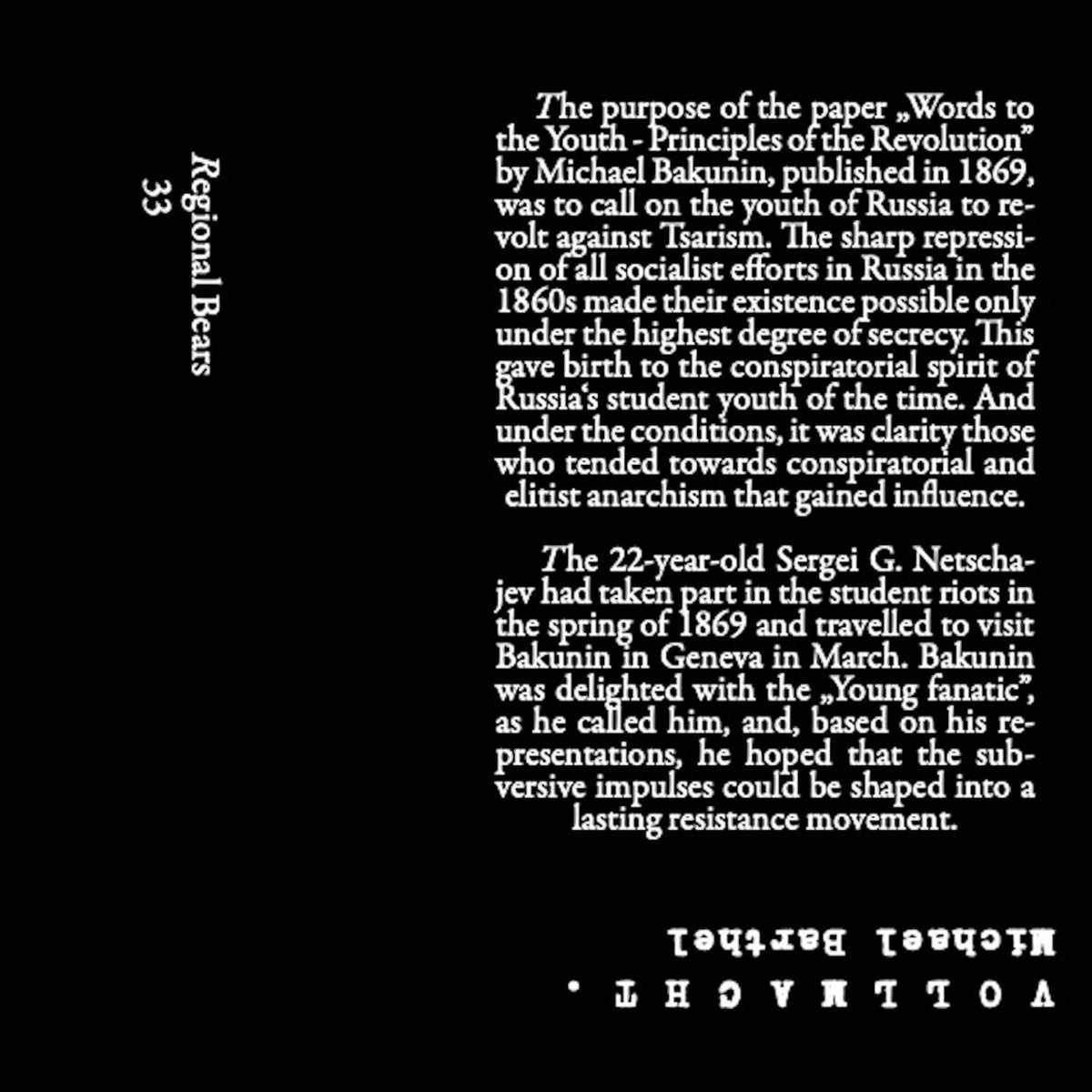 „VOLLMACHT“ was recorded from March-May 2020 at Kunstverein Röderhof. The four page cover is using the prologue of Michael Bakunin’s book „Words to the Youth - Principles of the Revolution“.