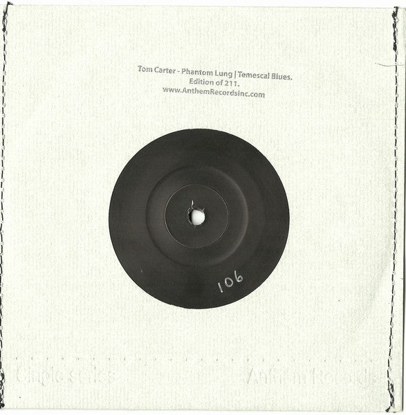 An extremely limited one-sided 7-inch from TOM CARTER of CHARALAMBIDES. Features two tracks, Phantom Lung" and "Temescal Blues," packaged in sewn paper sleeves and pressed in a numbered edition of 211 copies."