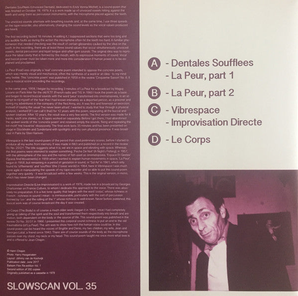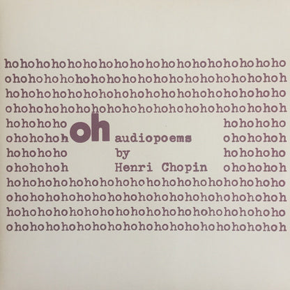 Second pressing of 300. "Originally issued in 1978 on cassette by Balsam Flex. "Balsam Flex was a cassette label run by the artist Erik Vonna-Michell in the late 1970s and early 1980s, and evidence of a relatively overlooked moment when a number of London-based British poets were producing work that was influenced by performance art, conceptual art, sound art, text-sound composition, Fluxus, and situationism.\r\nOne of their most impressive release is Oh: Audiopoems, by the legendary Henri Chopin, a collection of his work from 1958 to 1979. Henri Chopin was a key figure of the French avant-garde during the second half of the 20th century. \r\nTowards the end of the second world war, Henri Chopin, who has died aged 85, escaped from a forced labour camp in Olomouc, in what is now the Czech Republic, after it had been bombed. He then spent time with the advancing Red Army, until, recaptured by the Germans, he and inmates of concentration and extermination camps were sent west on a Nazi "death march".