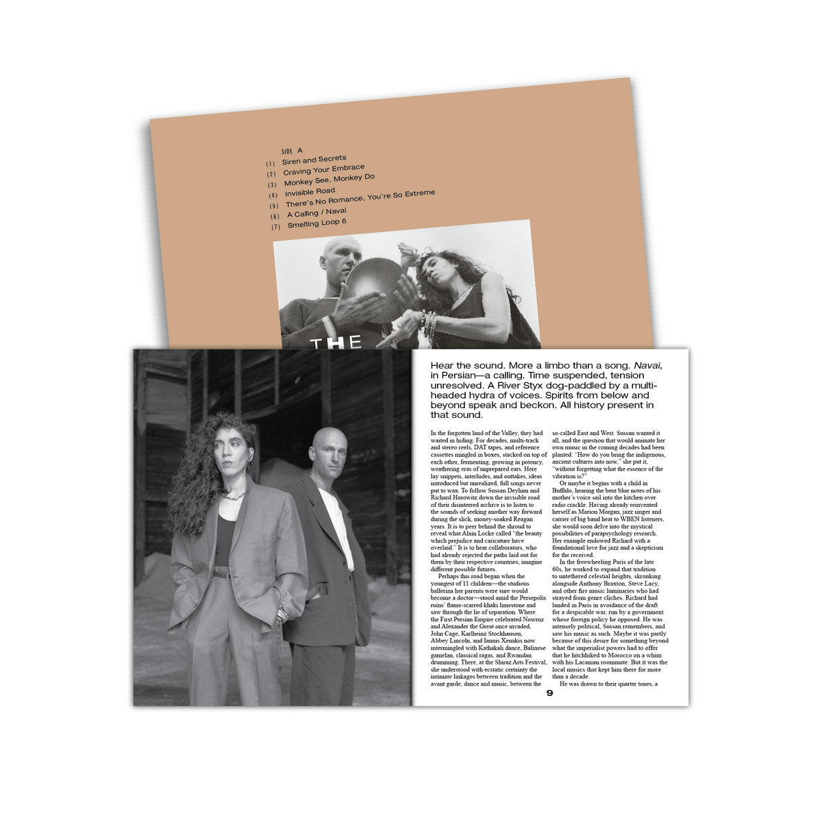 Despite their difference in backgrounds and respective journeys, at the time of their meeting in the early 1980s in New York City, Sussan Deyhim and Richard Horowitz were both products of the search for freedom and understanding (and resultant awakenings) that swept the globe and helped culturally define the late 1960s and 70s. Deyhim, born and raised in Tehran, spent her teens dancing with Iran's Pars National Ballet company, performing weekly on Iranian national television, and travelling her home country studying with master folk musicians and dancers, before relocating to Belgium and joining Maurice Béjart's prestigious Béjart Ballet of the 20th Century. Horowitz, born and raised in Buffalo, New York, had spent much of the decade before abroad, first departing for Paris under the shadows of the Vietnam War, where he studied piano, Eastern philosophy, and became entrenched the city’s free jazz scene, playing with the likes of Steve Lacy, Anthony Braxton, and Alan Silva, before embarking south to Morocco where his friendship with Paul Bowles helped cultivate a deep passion for the country’s musical traditions and a shift in his musical practice.
