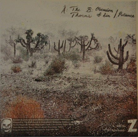 Philadelphias FAR OUT FANGTOOTH have been meddling within their own poisonous cloud of murky, atmospheric noise for a while now, and after a stellar debut LP on Siltbreeze last year, weve cornered their deliriously downtrodden din for a blurry 3-song EP of devastating caliber. Their solidly mid-tempo, gazey gait, braced with gothic flourishes of noise and carefully arranged explosions of angelic harmony are beautifully morose and radiant at the same time, combining the guit-architecture of Sonic Youths early primal scree with Circle Pits squalorous nuances to create a heavenly hypnotic, haunting haze. This is a band that seduces you when your guard is down, only to soar down and rip your heart out of your chest just at the moment when the rising tide of crashing noise hits you at full force, breaking any human down into their simplest parts. A deeply disturbing, yet fulfilling set of tracks that make that dark place in your heart seem like a nice place for a picnic, and a greater sense of anticipation for what Far Out Fangtooth will drudge up next. Edition of 475 copies. - Hozac.