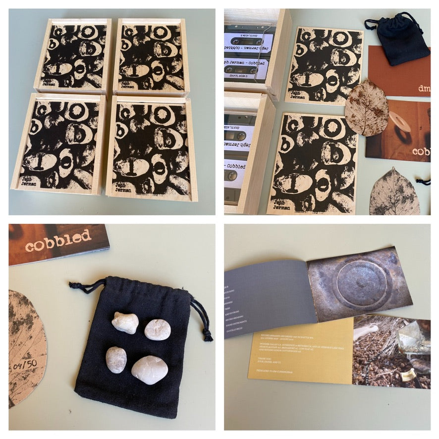 “Jeph Jerman started recording and performing in 1986 under the moniker Hands To. Most of his early soundwork was sampler and tape loop based, though slowly evolved from electro-acoustic pieces to environmental recordings with very little to no manipulation or electronic processing using only natural found objects like stones, shells, bones, driftwood, pinecones, etc.