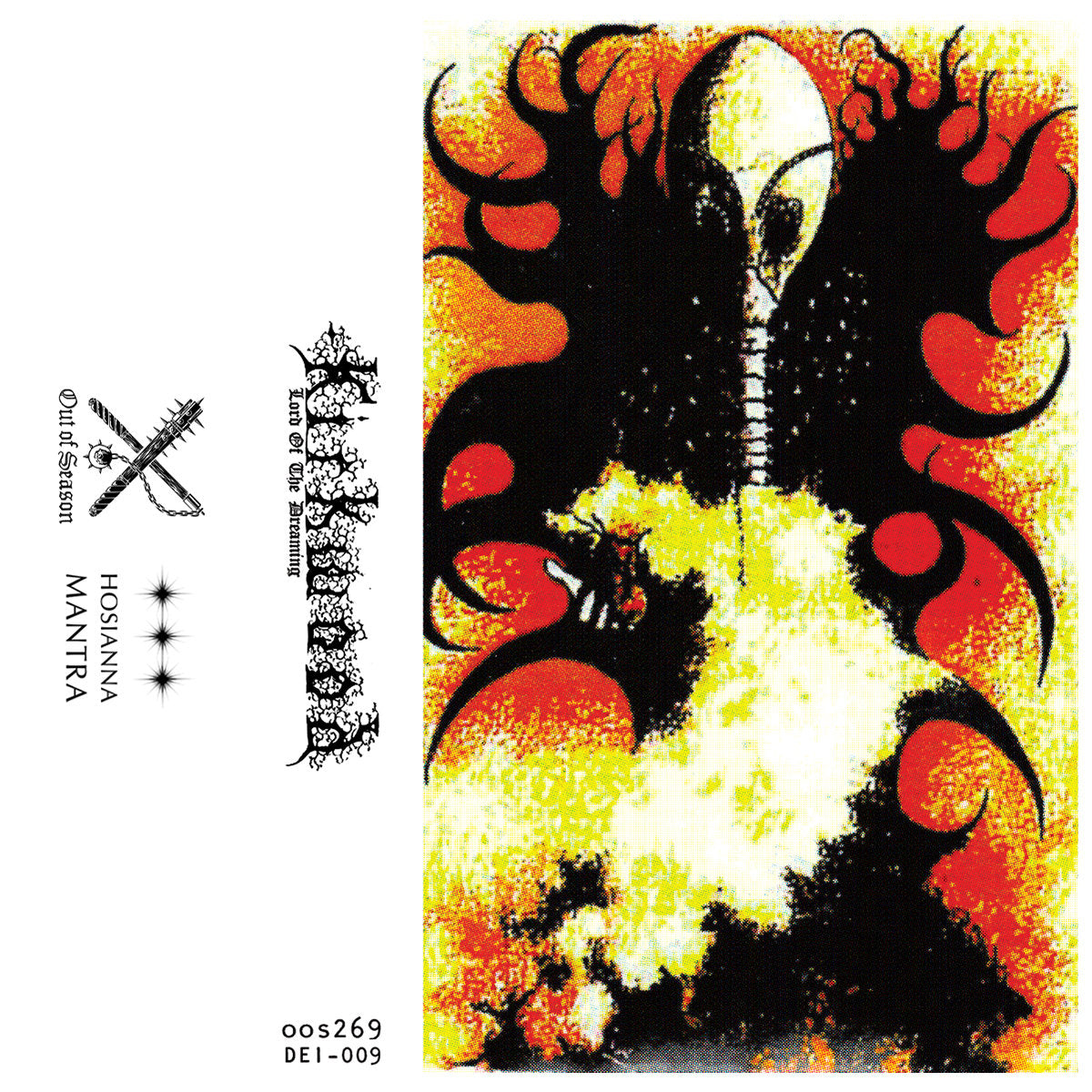 Following the completion of the Middle Earth and Eternal Champion trilogies, Kirkwood pushed forward into 1992 at a furious pace, turning next to material inspired by the seminal dark fantasy series Sandman. The comic’s themes of dreamscapes, myth, and the occult aligned perfectly with Kirkwood’s creative drive at the time, resulting in Castle of Sand (1992, oos268/DEI-008), Lord of the Dreaming (1992, oos269/DEI-009), and Through a Dark Glass (1993, oos267/DEI-007). These cassettes also marked the first appearance of vibrant color in Kirkwood’s beautifully primitive cover art. Despite the popularity of their source material, these recordings remain among the most elusive in Kirkwood’s catalog: decades later, Lord of the Dreaming was misidentified and merged with material from Castle of Sand, while Through a Dark Glass has remained publicly unavailable—until now."