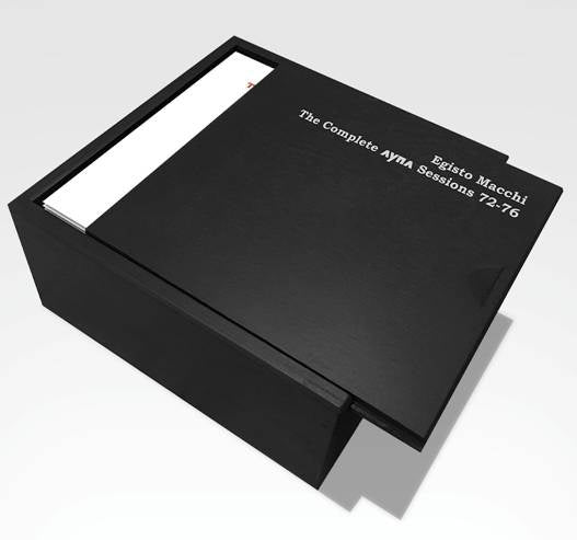 "All compositions released by maestro Egisto Macchi for AYNA Records from 1972 till 1976 available for the first time in a wooden limited-edition box with 13CD from the original master tapes. The entire series of LPs released for AYNA Records between 1972 and 1976 is now reproduced on CD in a box set edited by Cinedelic which has the advantage of making music available again that collectors have been competing for a long time for hundreds of euros. In the original editions an exhaustive and fascinating cross-section of the work of a composer who in his artistic career has been able to project his many souls as a member of the Gruppo di Improvvisazione Nuova Consonanza, author of works for avant-garde musical theater creator of soundtracks for free cinema director Joseph Losey and founder -- together with Evangelisti Ketoff and others -- of Studio R7-Electronic laboratory for experimental music in Rome in 1968. A versatility that is perceived in all its richness in these AYNA Sessions recorded together with a handful of instrumentalists recruited at the Maggio Musicale Fiorentino expressed in the surreal exotica of Africa Minima between Les Baxter and Debussy as in the cantatas to Fiorenzo Carpi of "Comedie Francaise" in the dramatic Morriconian tones of Prigionia as in the Baroque-isms of the Adagi and Allegri in the syncopated movements of "Violence" as in the ethereal plots of "Mexico". A fantastic journey through different eras and scenarios from which emerge some of the most inspired pages of the entire history of library music looted by crate diggers in recent decades: the impalpable and ghostly plots of Il Deserto the police raid of Nucleo Centrale Investigativo and the diptych composed of Pittura Moderna 1 & 2 and Pittura Contemporanea, in which Macchi offers a sound representation of the work of artists such as Burri, Mondrian, Pascali, and Kandinsky, tautologically reaffirming all the imaginative scope of his music. 13CD set; includes a booklet; numbered wooden box; edition of 400." - Cinedelic Records .