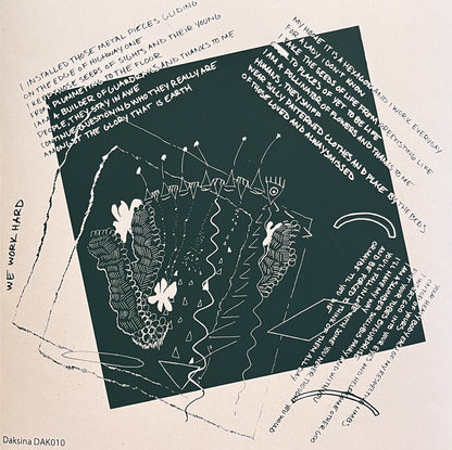 "Delicate folk songs delivered in a time of emotional reckoning. Recorded under the barest possible circumstance in my living room during the summer of 2013. 100 copies housed in folded High quality Card Stock. Silk Screened By SIWA Prints." - Daksina,