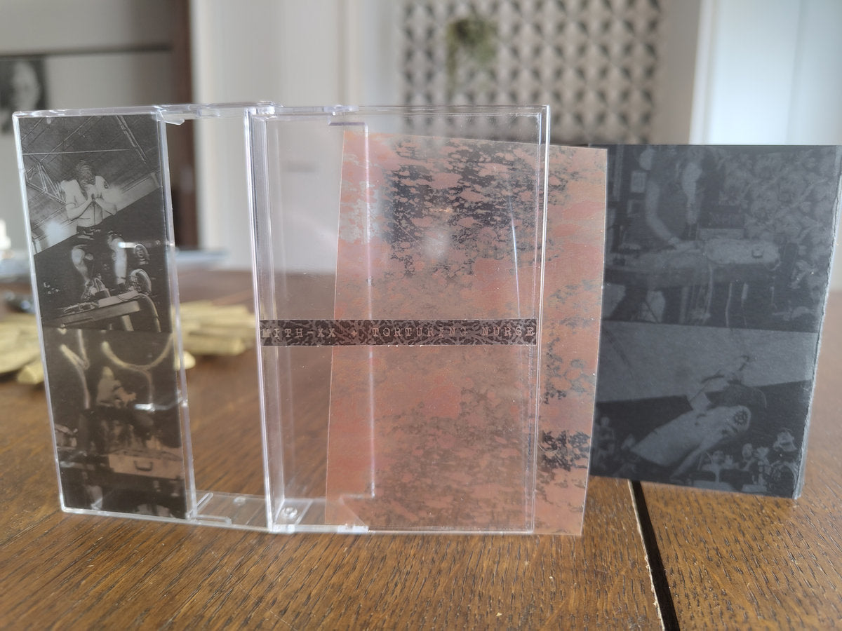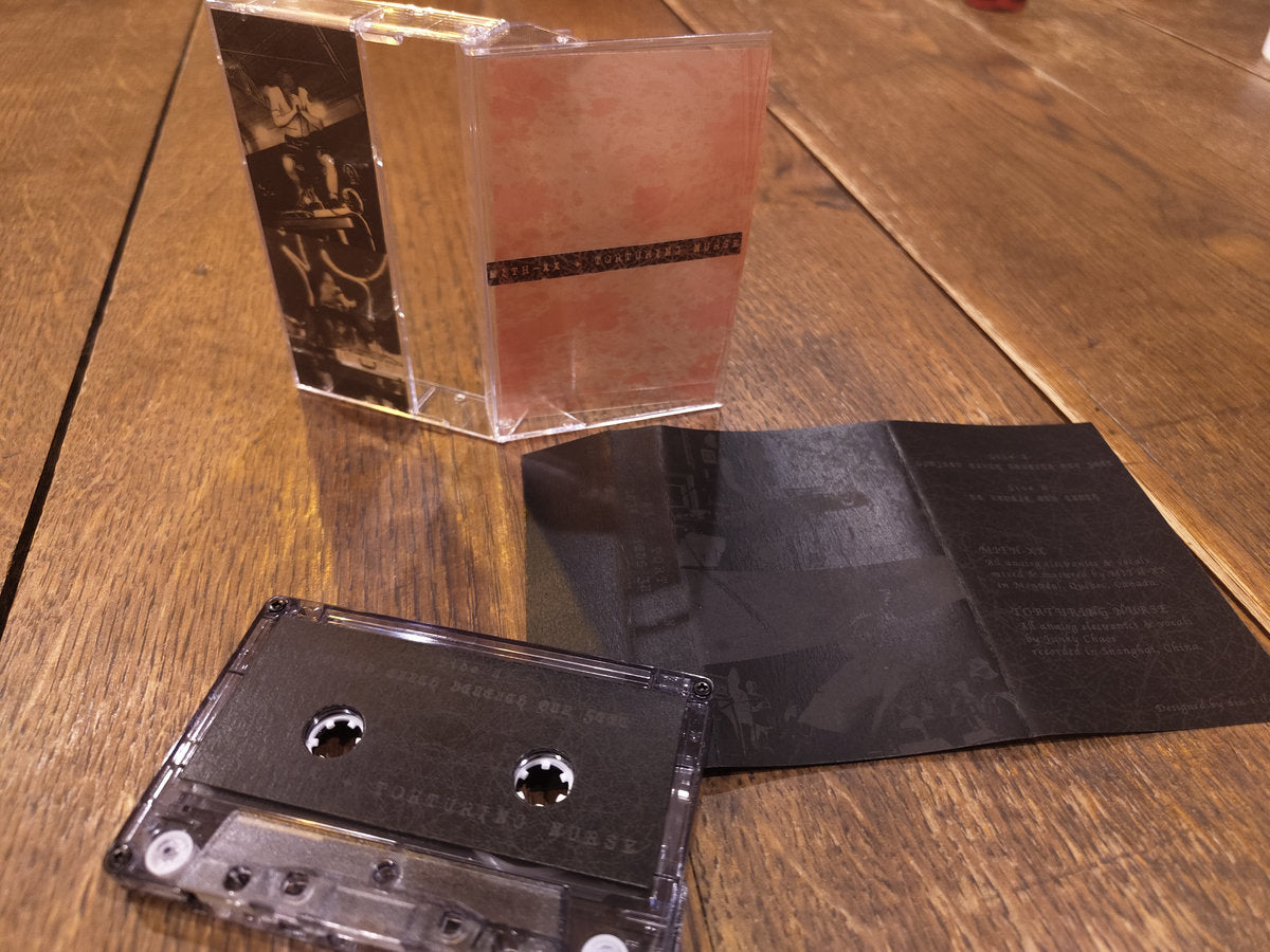 "Harsh noise power electronics cassette condensed into a 20 minute tape by Canadian and Chinese noise artists. Noteworthy along with their very unique harsh sound is that with their spectacular vocals they are used more as a means to express the unconscious realm beyond language than lyrics. To visualize their worldview, a three layer cover (cassette case with stickers, blood splatter film, and black jacket) is used. It was duplicated on the legendary Nakamichi ZX-7 cassette deck from the 80s." - Advaita Records
