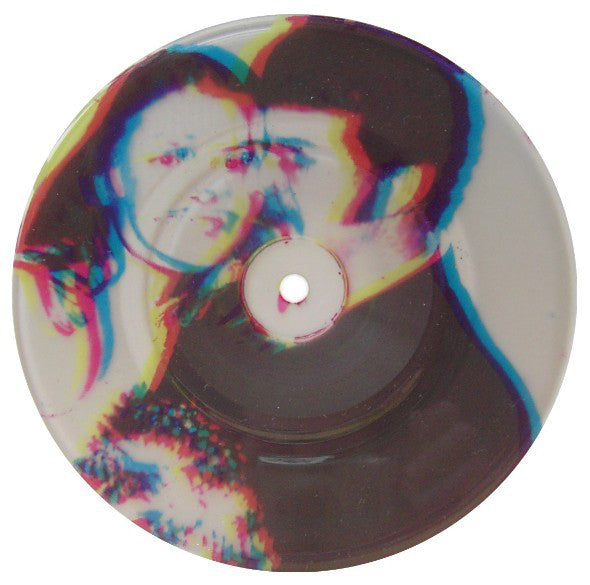 "Airport war contributes the left channel and new humans contribute to the right channel to a one-sided record. the result is a five minute wedding of violent bliss. cover is an untitled wedding photo (1970) that is silkscreened in off-registered yellow, red, and blue. the wedding was short lived, the groom stabbing the bride several dozen times shortly after the honeymoon." - Airport War.