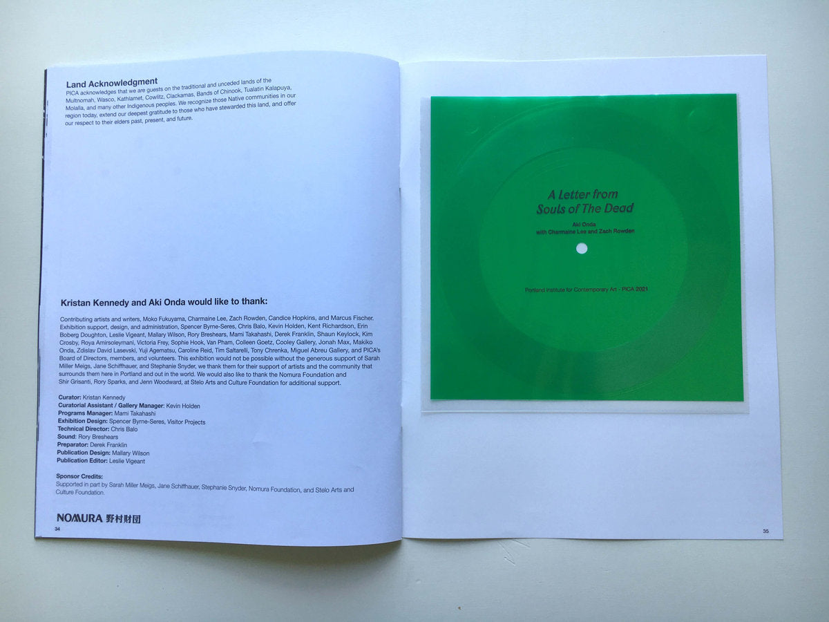 "The soundtrack for Aki Onda's the first major solo exhibition A Letter from Souls of The Dead at Portland Institute for Contemporary Art (PICA) from July 10-September 4, 2021.Commissioned by PICA and curated by Kristan Kennedy, artistic director and curator of visual art, this exhibition features collections of found objects such as bells, surplus electronics, photographs, and old-fashioned slide projections. The soundtrack for this exhibition was composed by Onda in collaboration with New Yorked-based vocalist Charmaine Lee and New Haven-based musician Zach Rowden." - Pica.