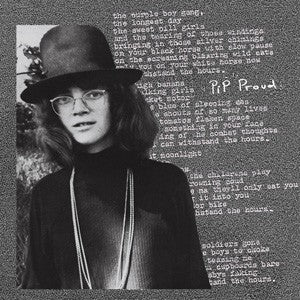 "A singular single from a singular singer, 1968s Purple Boy Gang" and the previously-unissued 1997-recorded "A Million Years from Now" traverse three decades, yet display Pip Prouds unchanged and unchallenged uniqueness. Poet, singer, songwriter, romantic visionary, beloved outsider, Prouds unrestrained genius shines forth on both the Velvets-y band-backed A-side and the solo vox/guitar home-cassette-recorded B-side. Although considered a sort of Antipodean Syd Barrett, Pip Proud developed his world without prior knowledge of Barretts work." - EM.