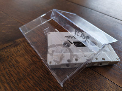 "We are pleased to announce the reissue on cassette of Pure(Predecessor of Skullflower)- Fetor, originally released in 1987 by Birthbiter. Skullflower is the pinnacle of guitar feedback noise, and Pure - Fetor is one of Matthew Bower's earlier explorations. The refrain and feedback noise format that would later be perfected on Skullflower was already in place, but the echoed vocal and guitar refrain is a hallmark of this period. The artwork has been changed to a new Japanese style at the request of Matthew Bower. Duplicated on the legendary 80's Nakamichi cassette deck ZX-7." - Advaita