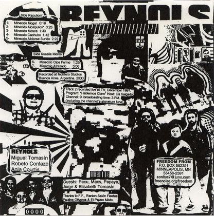 "Reynols started in 1993 in Buenos Aires and is famous amongst many things for its unique Down’s syndrome drummer/vocalist Miguel Tomasín, who is the band's spiritual architect. Reynols is also known its musical diversity, which spans everything from cosmic free rock and lo-fi drone electronic music, to conceptual sound art and social/political/esoteric observations." - Pica Disk