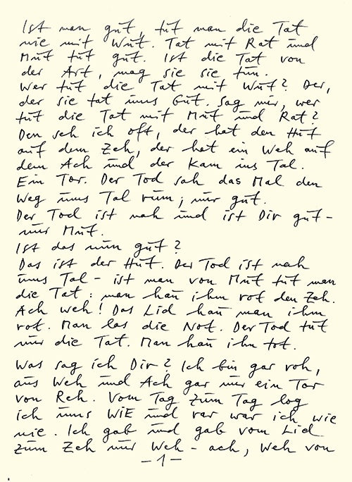 Andrea Tippel was born 1945 in Hirsau/Black Forest, and grew up as the middle of three sisters in Bremen. Her parents were the architects Maria Alexandra Mahlberg and Klaus Tippel. In 1969, she was a state-certified actress (Max-Reinhardt-Seminar in Vienna and Berlin), then studied philosophy and psychology in Berlin, Hamburg, and Munich. In 1971, Tippel moved to Berlin and started to create drawings, objects, composites, texts, and books, as well as a few oil paintings. In 1974 she had her first exhibition with Tomas Schmit, started to produce artist books in 1980, and editions for various galleries from 1987. She maintained close friendships with Suzanne Baumann, Henriette van Egten, Ludwig Gosewitz, Dorothy Iannone, Dieter Roth, Tomas Schmit, Jan Voss, and Emmett Williams. Tippel was appointed as a professor at the Hochschule für Bildende Künste Hamburg in 1997, and co-founded the Dieter Roth Academy (DRA) in 2000. She passed away in 2012 in Berlin.