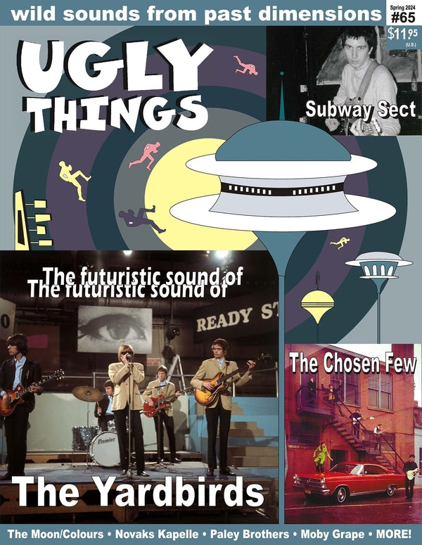 "Ugly Things issue 65 top cover story: the Futuristic Sounds of the Yardbirds; writer Peter Stanfield explores their change of direction in 1965, their rivalry with The Who and lots more. Also featured: Detroit rock pioneers the Chosen Few, the band that spawned future members of SRC and the Stooges, the compelling story of UK '70s punk outsiders the Subway Sect as told by guitarist Rob Symmons; '70s power pop princes the Paley Brothers; Viennese proto-punk anarchists Novaks Kapelle; the sixties adventures of Matthew and Daniel Moore (the Moon, Colours, Matthew Moore Plus Four); and a fascinating study of the beat music industry behind the Iron Curtain during the Cold War. Plus: Moby Grape, the Ascots, Cyril Jordan on Little Richard, and the meticulous review sections, covering all the latest vinyl and CD reissues, and rock and roll-related books." - Ugly Things.