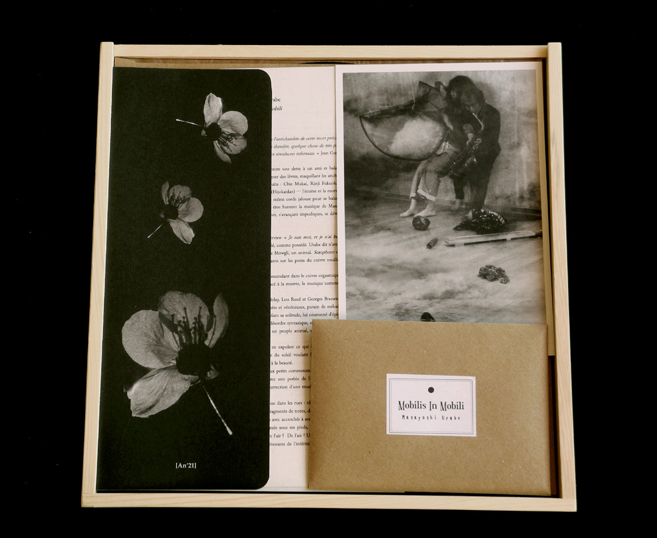 Edition of 285, silk-screened wooden slipcase with 3 silkscreened panels (black & gold) + inserts and a 6 postcards set. Handmade slipcases and printing by Alan Sherry. Liner notes by Michel Henritzi.
