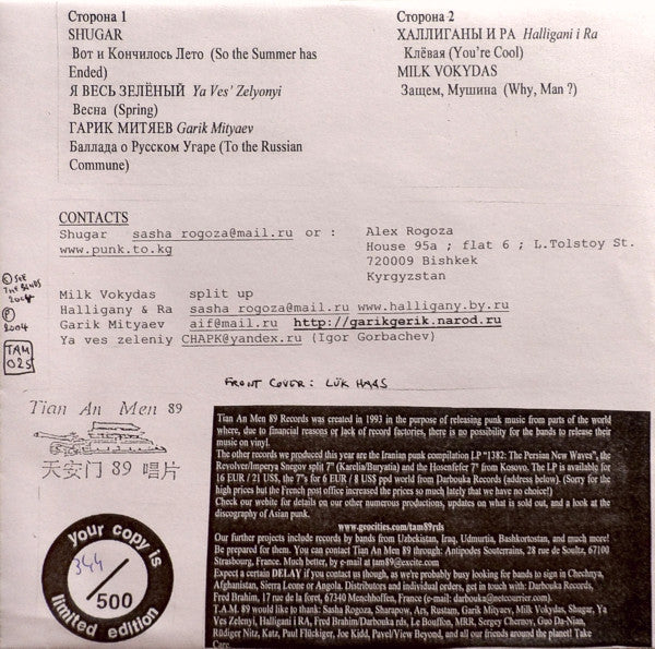 "Tian An Men 89 or 天安门 89 唱片, is a punk rock label mostly operating out of France (has also operated from Uganda, Abkhazia and other places) that specializes in limited-edition vinyl releases from Asia, The Middle East, Africa, Latin America, and the former Soviet Union. Releases are distributed worldwide through DIY networks.