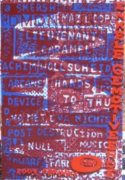 "Compilation of mainly Dutch experimental groups from the eighties tape scene, with appearances by Hands To, Arcane Device, Lieutenant Caramel, Merzbow, Null, Wollscheid, etc. In large format color printed Staalplaat-style cassette folder. Deluxe." - Incubator.